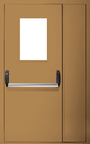 Полуторапольная противопожарная дверь «Антипаника» со стеклом EI 60 (RAL 8000)