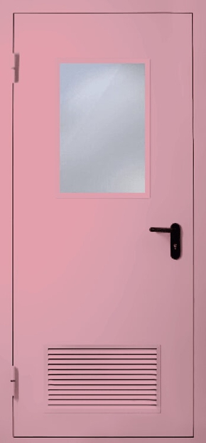 Однопольная противопожарная дверь с вентиляцией и стеклом EI 60 (RAL 3015)