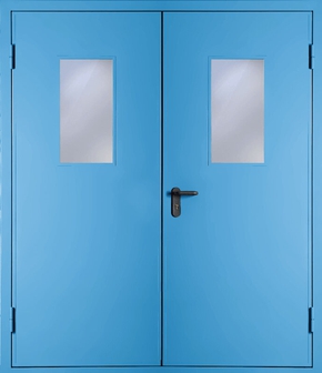 Двупольная противопожарная дверь со стеклом EI 60 (RAL 5012)