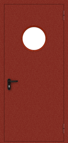 Однопольная противопожарная дверь c круглым стеклом (порошок / красная)